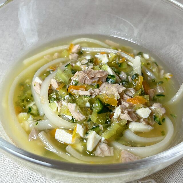 宮崎名物「冷汁」をヒントに、風味や夏野菜にこだわったワンちゃんのための日本食。すべての食材を有機で厳選し、普段の食事ではなかなか食べにくいゴーヤやきゅうりなどの夏野菜の栄養をたっぷり詰め込みました。